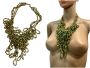 00s Handmade Heavy Irregular Green / Gold Glass Bead Multi Strand Necklace
