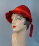1930s Red Wool Fringe Hat, NOS, Sz 22