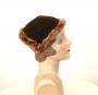 1940s cap fur lined hat knit hat brown headband hat expandable adjustable collapsible