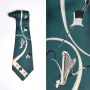 1940s Mens Green Novelty Necktie Irish Shamrock Wide Celtic Harp Neck Tie