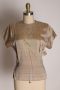 1940s Tan Beige Sharkskin Short Sleeve Frilly Detailed Bodice Button Up Back Blouse - M