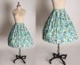 1950s Blue and White Floral Flower Print Pleated Skirt - S