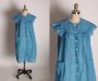 1950s Blue Ruffle Collar Cap Sleeve Button Up Pocketed Nightgown House Dress Robe