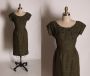 1950s Green & Brown Brocade Floral Short Sleeve Wiggle Dress w/Matching Cropped Short Sleeve Jacket