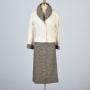 Here we have a stunning 1950s tweed skirt suit with a white leather jacket!