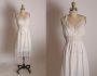 1950s White Nylon Ruched Bodice Attached Waist Ties Nightgown Lingerie by Rogers - S