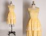 1950s Yellow & White Gingham Pattern Eyelet Lace Ruffle Tiered Sleeveless Cottagecore Prairie Dress