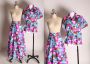 1960s 1970s Blue & Pink Button Down Honeymoon Two Piece Hawaiian Shirt & Matching Wrap Skirt - XL