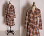 1960s 2-pc Rust Brown Orange & Gray Plaid Long Sleeve Button Up Jacket w/Matching Skirt Suit