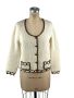 1960s 70s Evan-Picone wool cardigan ivory with brown trim Size M/L