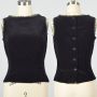 1960s Black Cotton Velvet Top with Lace Details Vintage Black Velvet Sleeveless Blouse