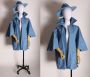 1960s Blue 3/4 Length Sleeve Starched Angel Sleeve Raincoat Jacket with Matching Hat - M/XL