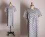 1960s Blue and White Abstract Double Knit Short Sleeve Shift Dress - XL