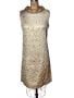 1960s gold metallic brocade shift dress with beaded collar Size M/L