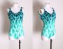 1960s Green Turquoise and White Novelty Leaf Print One Piece Swimsuit by Deweese - S/M