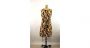 1960s linen shift dress MCM mod geo design gold gray brown Size L