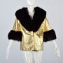 1960s Metallic Gold Leather Jacket Black Fox Fur Glam Femme Fatale Bombshell