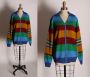 1960s Multi-Colored Rainbow Striped Blue, Green, Red & Tan Long Sleeved Wool Knit Zip Up Cardigan XL