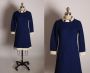 1960s Navy Blue and White 3/4 Length Sleeve White Trim and Button Detail Go Go Mod Mini Dress