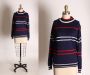 1960s Navy Blue, Red and White Long Sleeve Striped Pullover Acrylic Sweater by Miss Erika Inc. - S/M