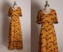 1960s Orange & Brown Floral Flower Power Full Length Ruffle Hem Flutter Short Sleeve Cottagecore