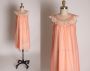 1960s Peach Pink Orange and Cream Sheer Overlay Nylon Floral Lace Night Gown by Kayser - S