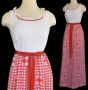 1960s Red and White Gingham Check Maxi Dress by Marla K California, Size Medium