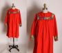 1960s Red, Blue & White Floral Trim Embroidery Detail Boho Hippie Long Sleeve Tent Mini Dress