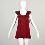1960s Small Burgundy Micro Mini Dress Tunic Top Velour Button Front Empire Waist