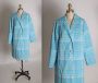 1960s Turquoise Blue and Gray Plaid Long Sleeve Polyester Coat