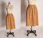 1960s Yellow and Red Plaid Elastic Waist Winter Wool Skirt - M
