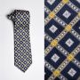 1970s Christian Dior Necktie Navy Blue Yellow Geometric Diamond Pattern Neck Tie