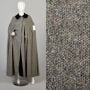 1970s Gray Full Length Maxi Cape Flecked Wool Tweed Cloak Velvet Collar