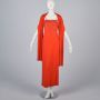 1970s Lillie Rubin Red Maxi Dress Rhinestones & Wrap Red Sleeveless Gown Matching Wrap