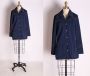 1970s Navy Blue Gold Tone Brass Rhinestone Studded Polyester Jacket by Krest Originals, Inc. - L