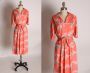 1970s Peach Pink Orange Short Sleeve Fabric Belt Tie Floral Swirl Pattern Dress - XL