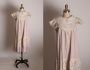 1970s Pink & Tan Floral White Embroidered Lace Detail Sleeveless Cap Shoulders Ruffle Hem Dress