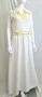 1970s Puritan Forever Young Maxi Dress White Yellow Gold Long Polyester Dress