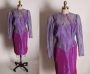 1970s Purple Sharkskin and Glitter Long Sleeve Party Dress - L