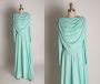 1970s Seafoam Green Blue Long Sleeve Cowl Draped Neck and Back Formal Full Length Dress - M