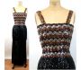 1970s sequin gown sheath shirred tube top gown black copper silver stretchy dress Size M