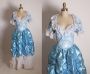 1970s Victorian Style Metallic Blue and White Ruffle Gathered Frilly Lace Full Length Pageant Dress