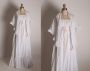 1970s White Eyelet Lace & Pink Ribbon Wide Strap Full Length Ruffle Hem Prairie Cottagecore Dress