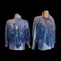 1980S 90s Fringe Leather Jacket Coat Cowgirl Iridescent Southwestern Swarovski Crystal Mermaid Color