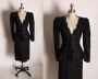 1980’s Black Lace Long Sleeve Rhinestone Button Gothic Peplum Jacket w/Matching Pencil Skirt