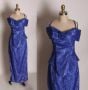 1980s Blue and Purple Lace Off the Shoulder Spaghetti Strap Full Length Formal Dress - M