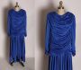 1980s Blue Long Sleeve Pointed Scarf Like Hem Draped Formal Sequin Detail Dress - XXL