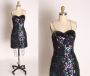 1980s Purple And Green Sequin Black Prong Rhinestone Strap Mini Dress by Nadine - XS/S