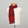1980s Red and Black Lambswool Houndstooth Fringe Scarf