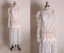 1980s Sheer White Lace Formal Draped Hem Drop Waist Wedding Gunne Sax Style Cottagecore Long Sleeve